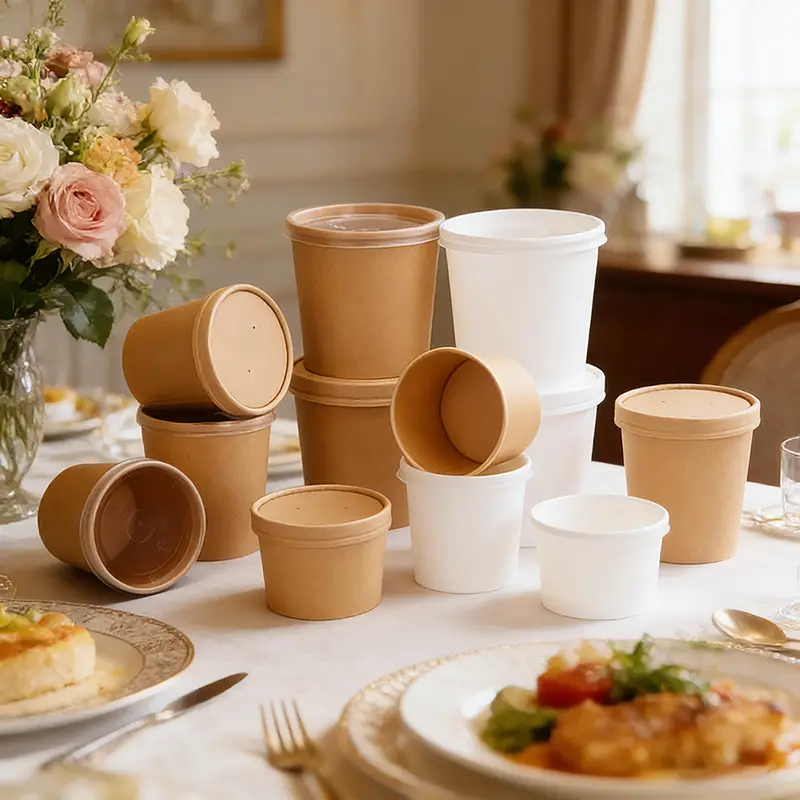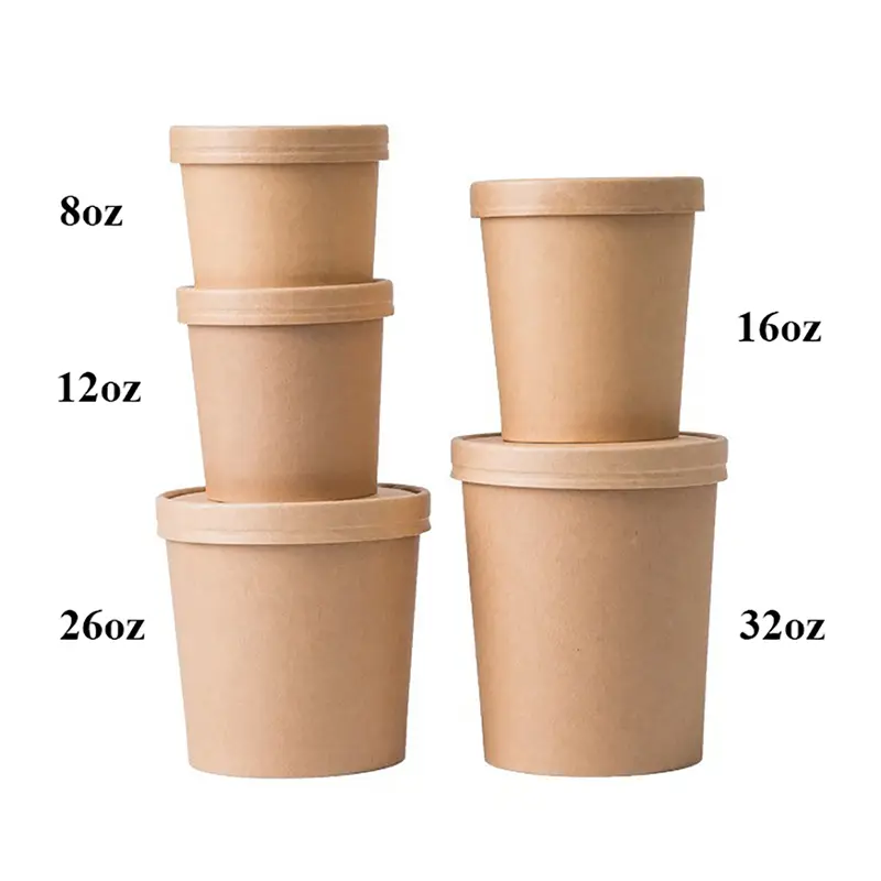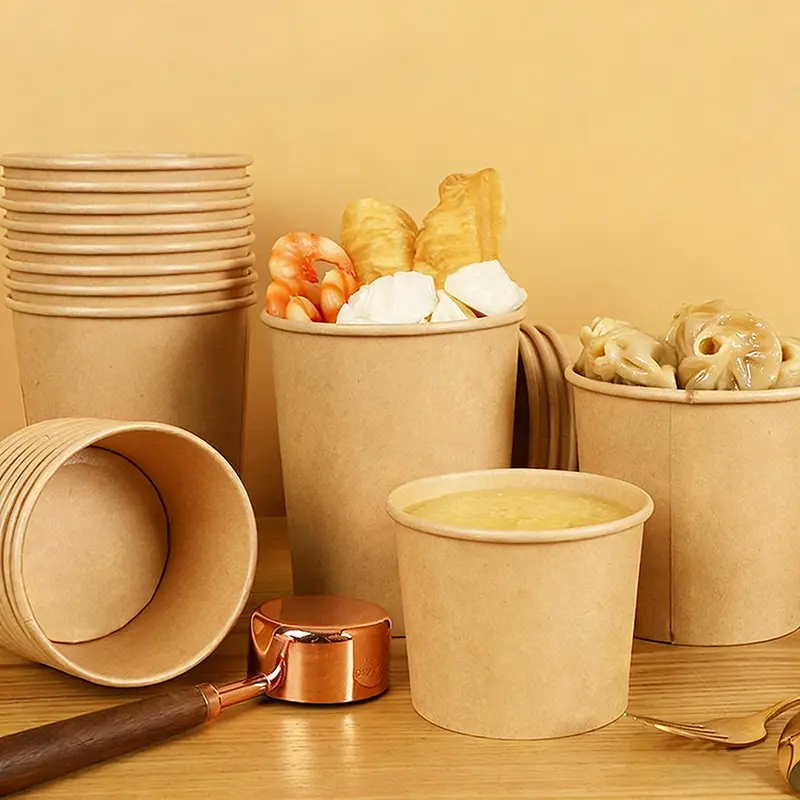 当社の32オンスのクラフト紙スープペーパーボウルは、温かいスープ、麺、パスタ、丼、唐辛子、おかゆ、サラダを安全に入れることができます。 32オンスの大容量は一人分の食事に最適で、カフェ、デリ、フードトラック、レストラン、コンビニエンスストアで広く人気があります。